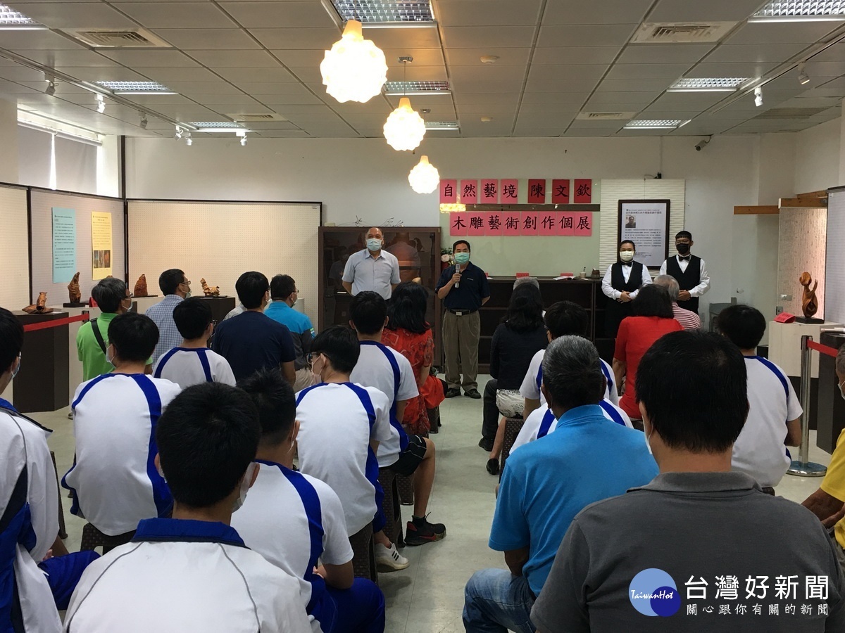 110學年度因疫情影響,全國中小學延至9月1日開學,學子歷經3個多月防疫三級警戒長期待在家中,極企盼能返校上課回歸正常上下學的日子。國立水里商工秉持在防疫的規範下學習不能等的理念,藝文中心特別邀請木雕藝術創作藝術家陳文欽先生蒞校舉辦「自然藝境陳文欽木雕藝術創作個展」,陳文欽先生精選46件極具指標特色之木雕作品於紅樓雅集展出。